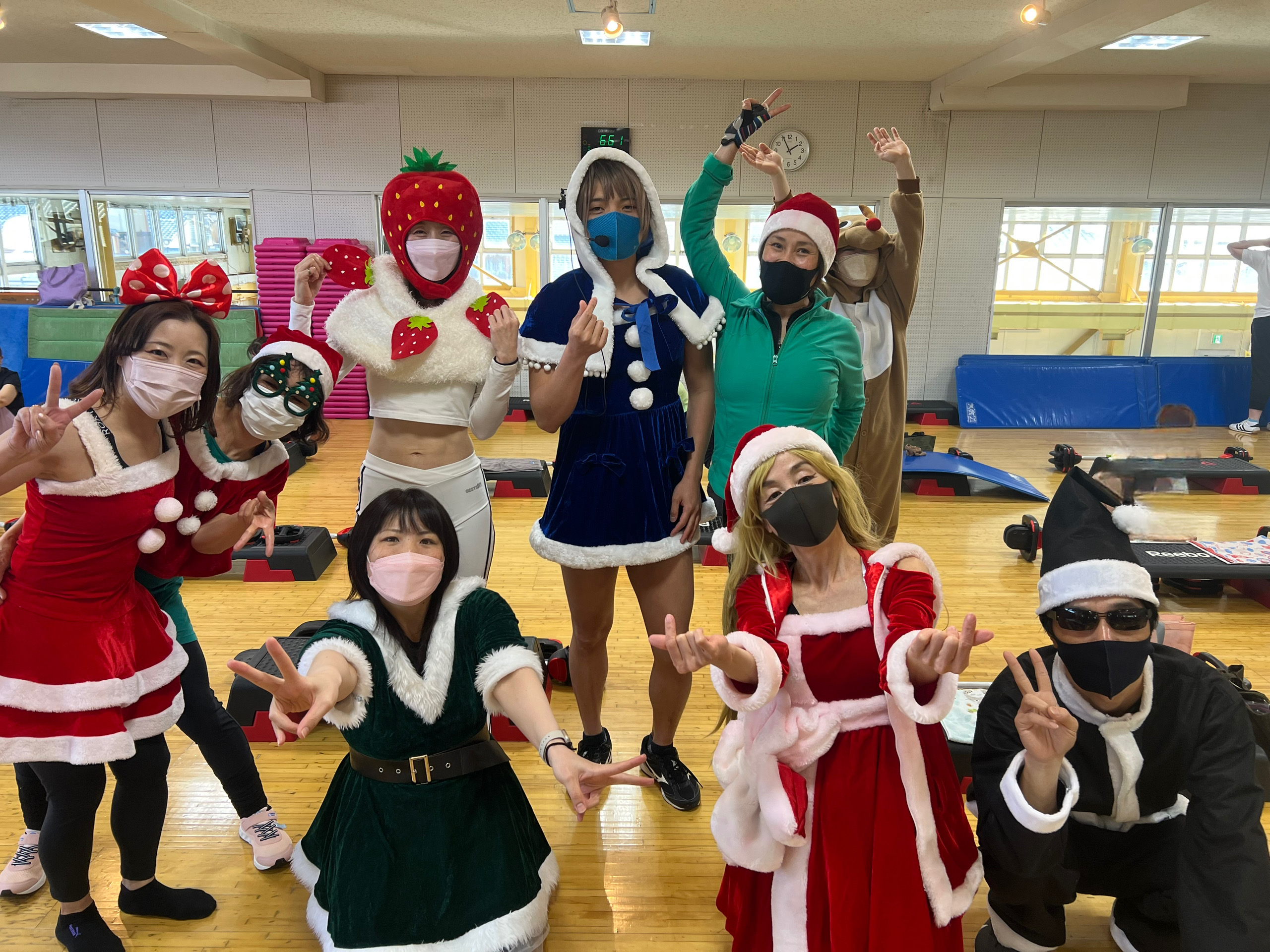 クリスマス 第2弾クリスマス仮装 コーチ編✨ 私たちも会員様とクリスマスを楽しみました⛄ まずは、ぽかぽかレク「﨑田コーチ」 﨑田コーチはどこだ??? 次は、ボディコンバット「田面コーチ」 会員のみなさんの仮装も力が入ってる~~✨ 最後は、ボディパンプ「天白コーチ」 て、、てっ、、天白コーチ。セクシー💖💖 クリスマスも大盛り上がりでした!!! 今年も残りわずか…⛄ クリスマスに負けず、 一緒にレッスンを楽しんでいきましょう✨