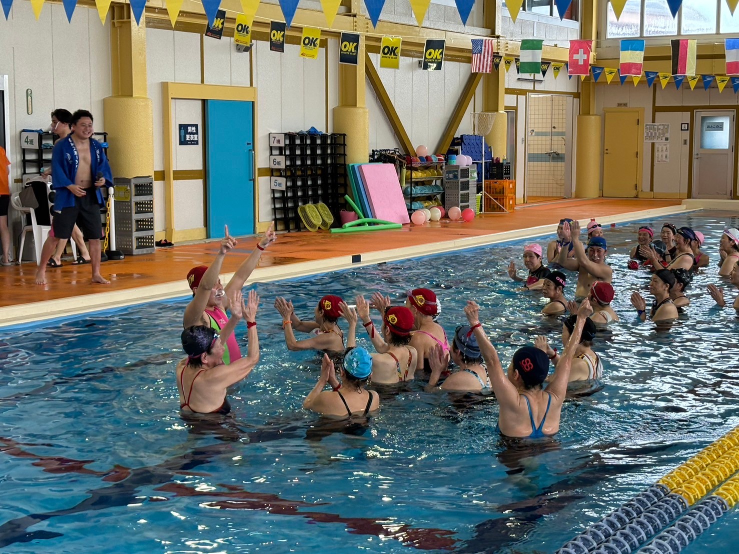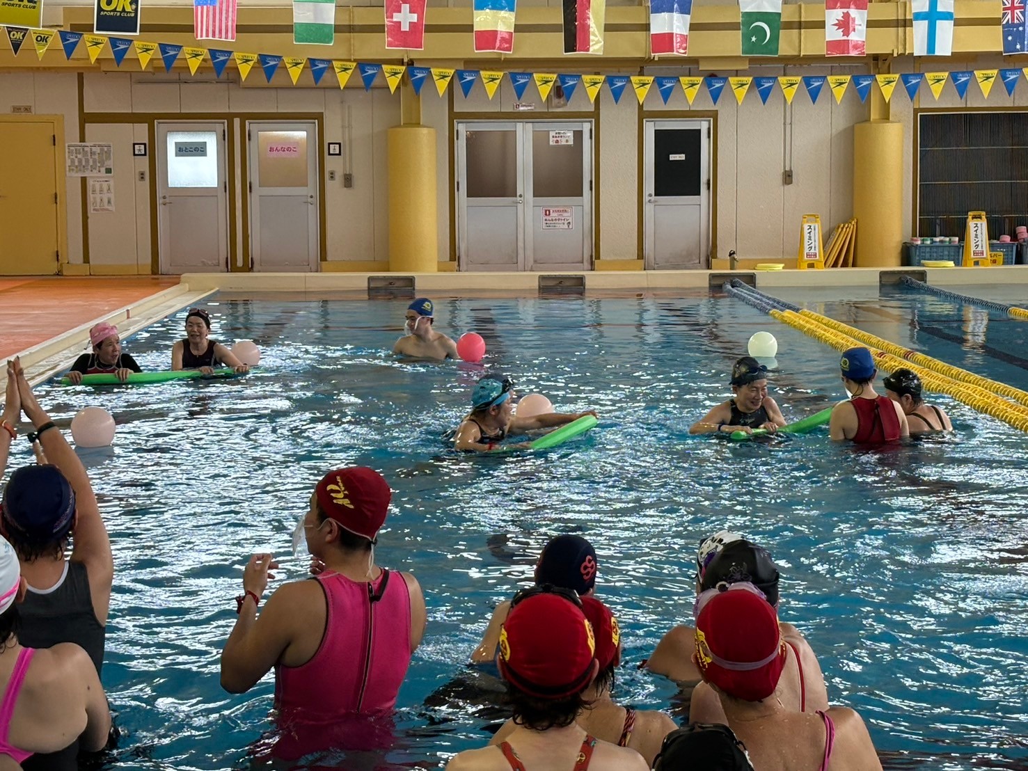 普段のプールではしない動きにみなさん苦戦中(;^_^A