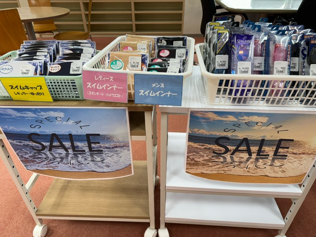 ただいまフロント前にて水着のセールを開催しています!!