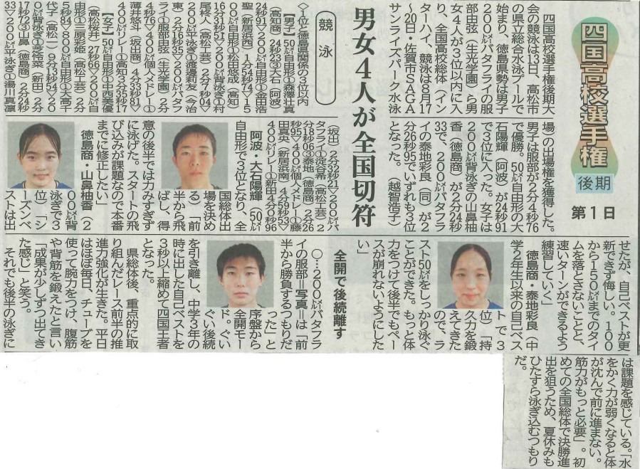 四国高等学校選手権 水泳競技大会 結果