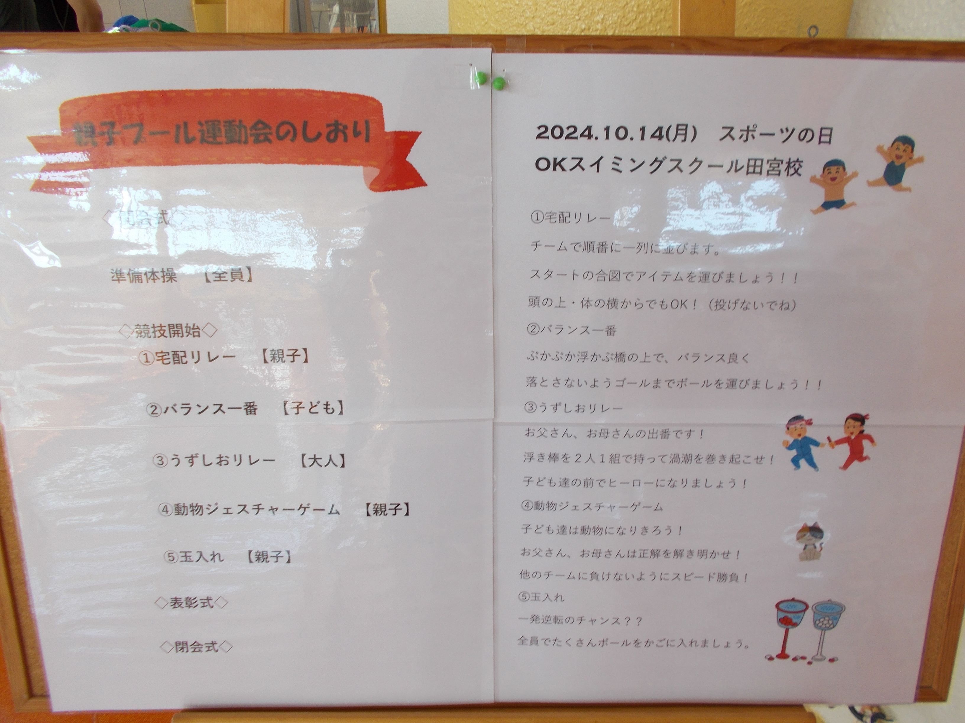 OKスイミングでは、親子プール運動会