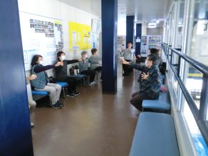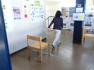 準備体操をして、ジムでは、開眼片足立ち・イスの立ち上がり測定を行いました。