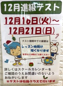 12月16日(火)~12月21日(日)の期間は進級テストになります🤩
