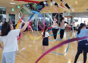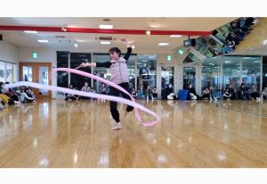 フープを回したり、リボンで円や八の字を描いたり、音楽に合わせて踊ったり♬