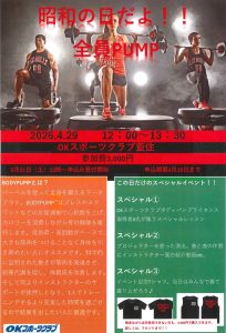 4月29日(水)12:00~13:30 昭和の日に OKスポーツクラブ藍住 Aスタジオで