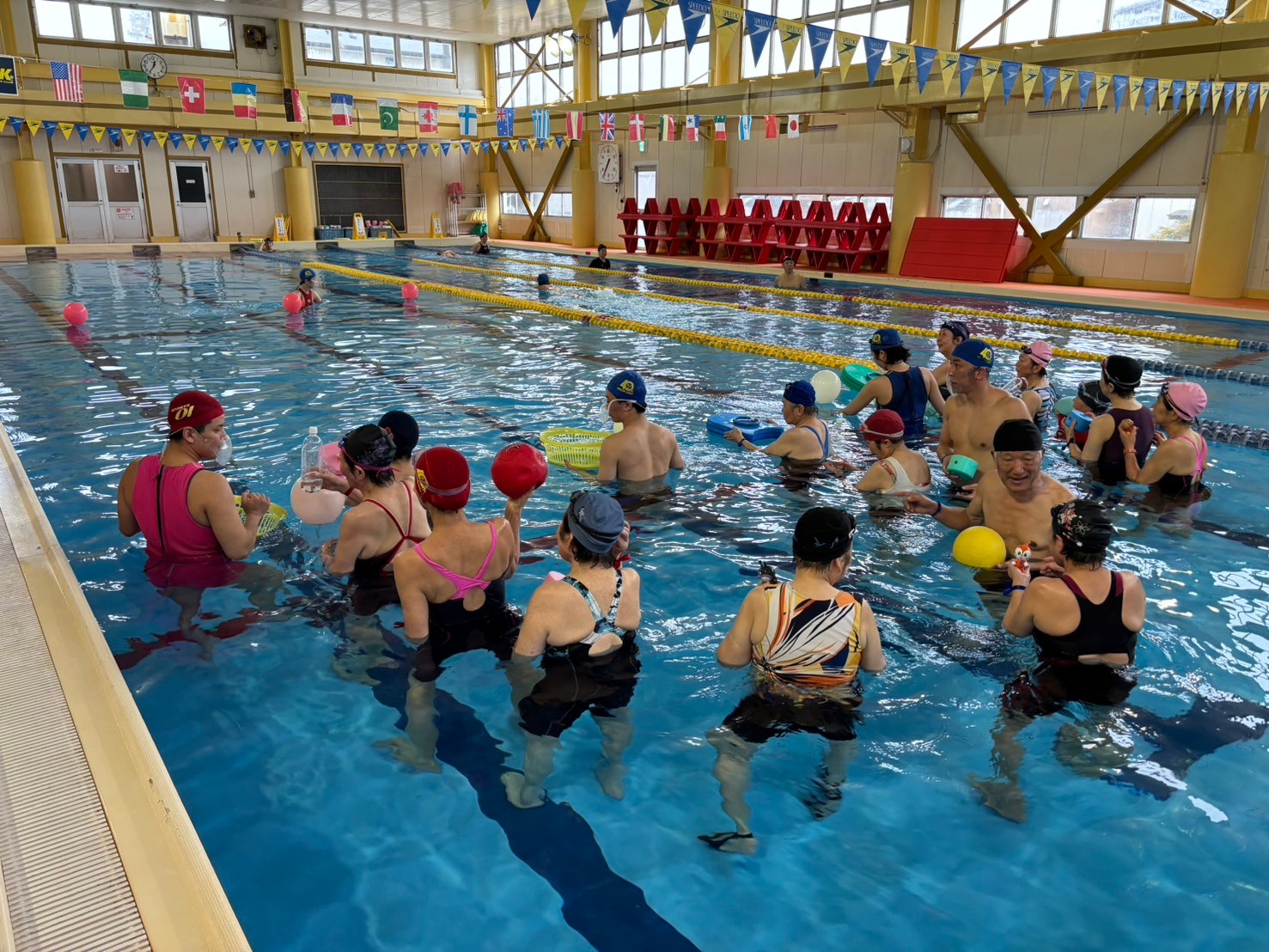 普段のプールではしない動きにみなさん苦戦中(;^_^A