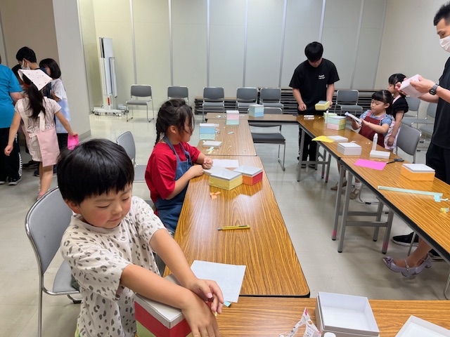 子どもたちは遊山箱をイメージしてお弁当を入れる箱を作ります!!