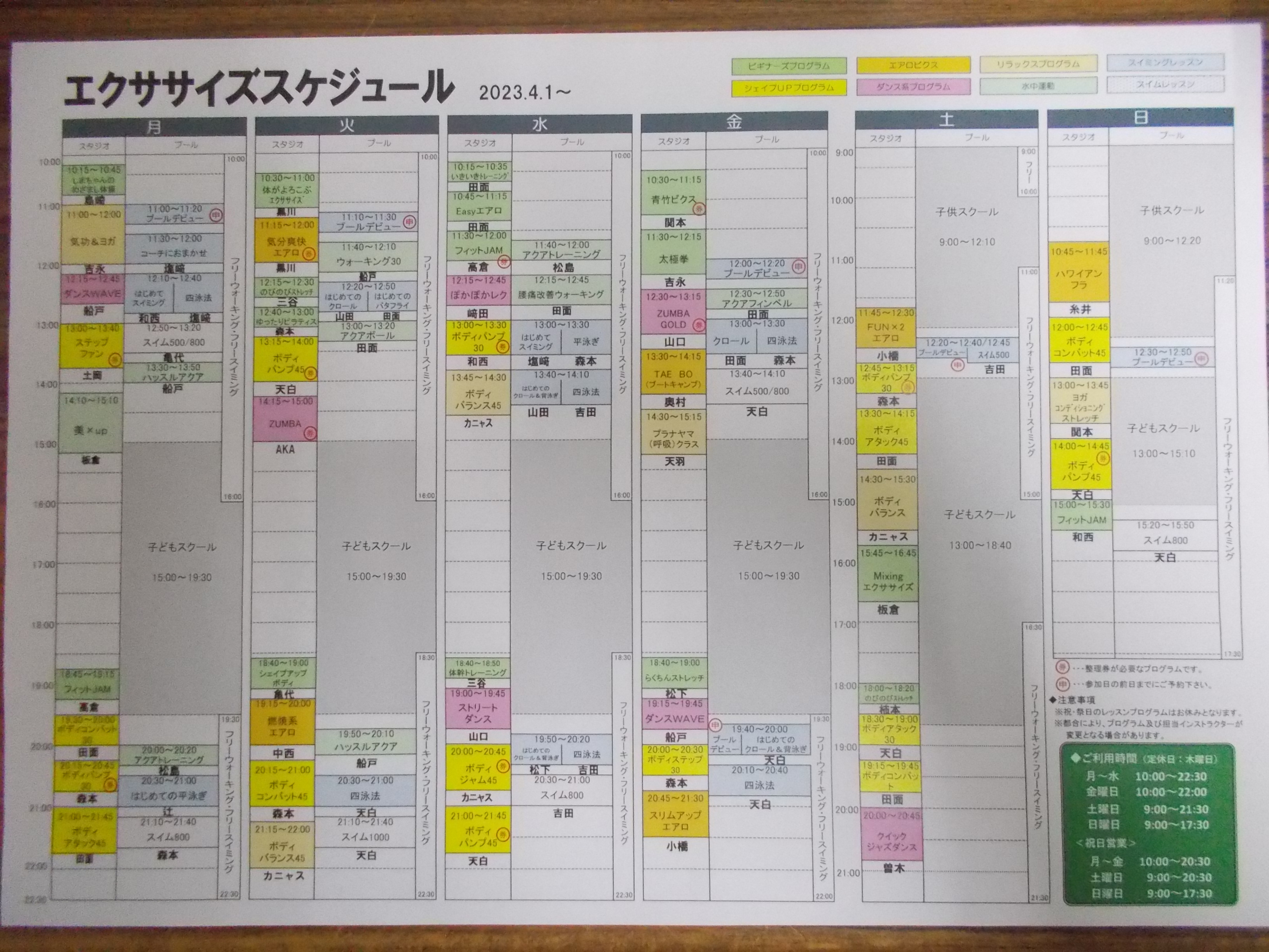 4月1日からエクササイズスケジュールが替わります。